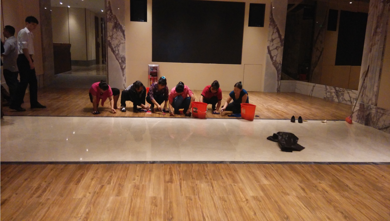 酒店屬盈利公眾的地方,酒店的開荒清潔更為高,選用豪華裝修的材料裝修后,固然對清潔要求也可想而知,包括門頂,玻璃方框,以及洗手間要求都很明顯。